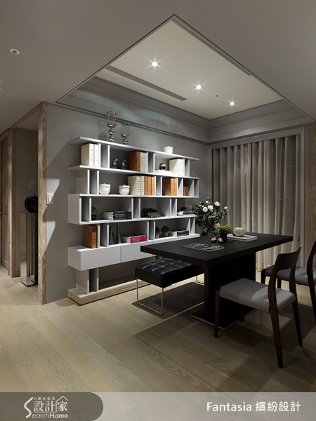 考量到屋主擁有大量藏書,設計師安排了容量充足的收納書櫃,不但能夠滿足藏書的收納需求,且造型典雅又富有創意,成為空間中極吸睛的端景。
