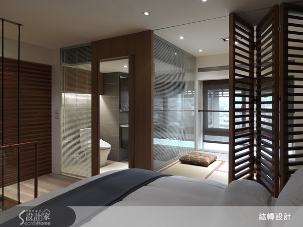 主臥內的空間採較為靈活、視覺可穿透的概念設計,和室及乾式廁所和睡眠區為一個整體,如果人較多時,可以將活動摺疊拉門闔上,並把廁所百葉簾放下,那麼就可以保有隱私的休憩空間。