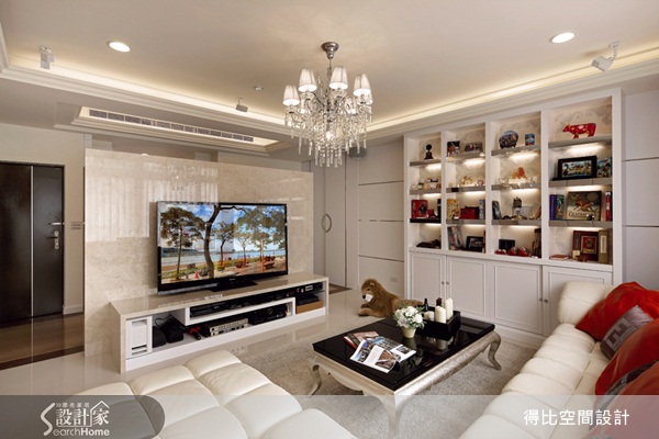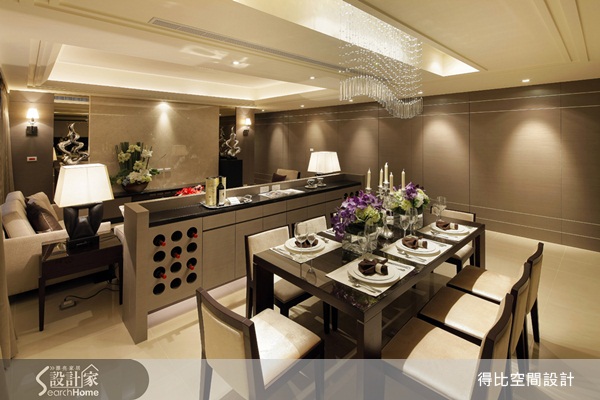 天花板高度夠,設計師便在上面規劃了凹槽設計,除了能與燈飾相契合之外,凹槽設計,也能讓天花板的視覺創造出向上延伸的作用。