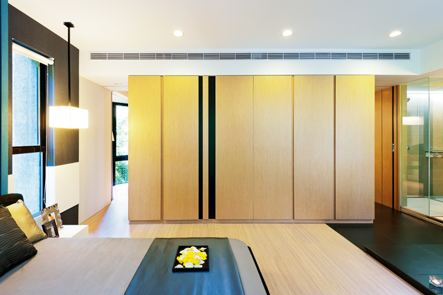可自在游走的動線!例如,用以隔間的主臥衣櫃,左右開口各可通往客廳與書房。