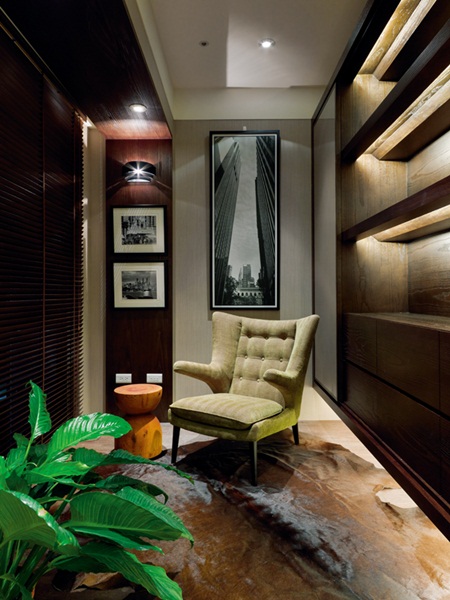 書房空間以深色調木皮,加上傢具與擺飾,完整呈現都會雅痞品味。細節設計。