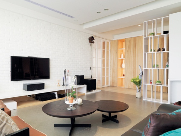 緊靠著大片落地玻璃,讓室內吸收自然採光,保留住客廳的乾淨簡潔。