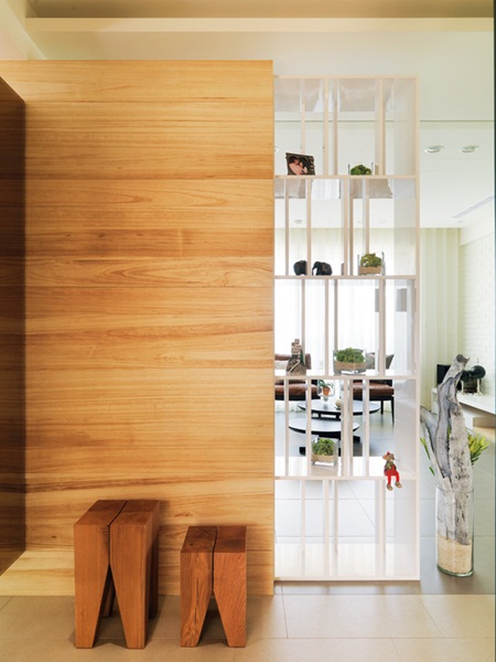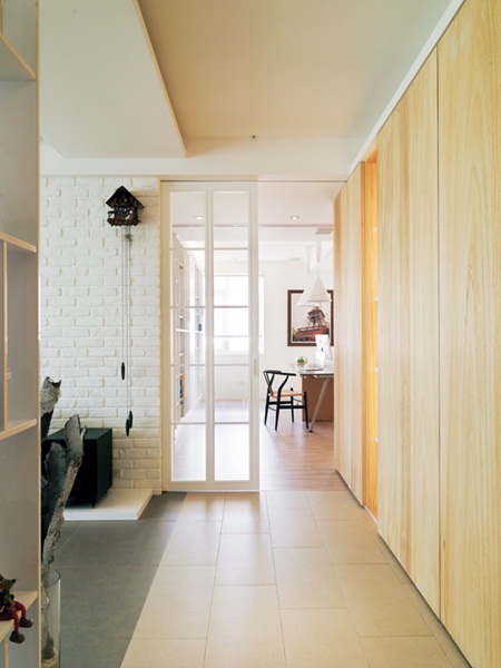 木質感迎賓玄關,伴著透光穿透的展示架,立刻讓進門者卸下一身疲累。