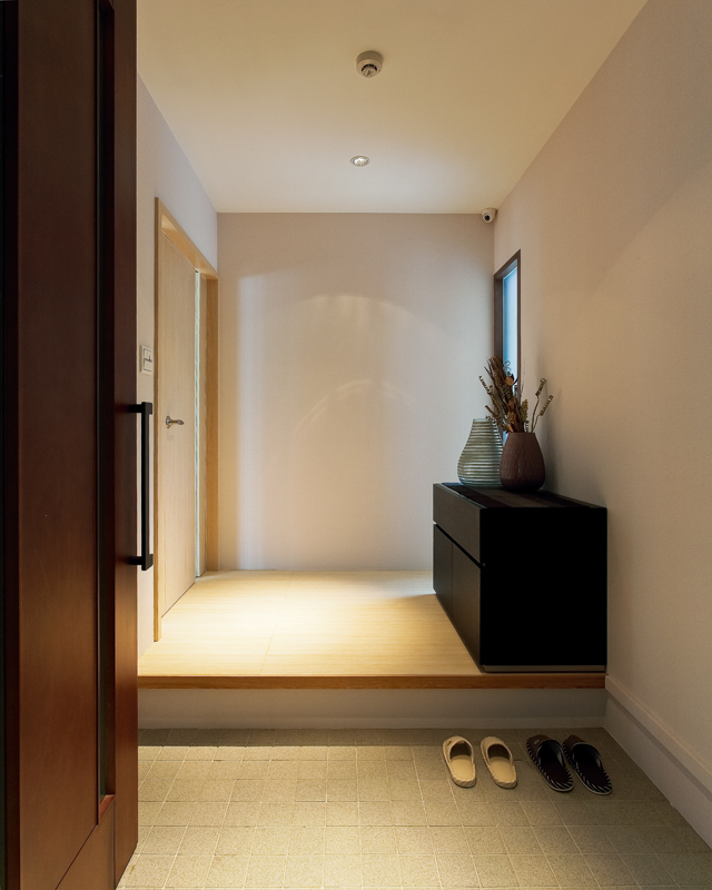 以木色營造素雅的密閉式玄關迴廊設計,在踏入客廳時會營造出一種由小入大,由窄入寬的視覺驚喜及感受。