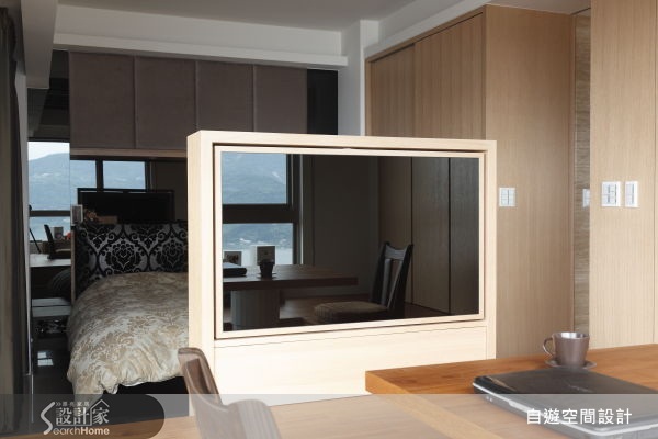 臥室空間結合了休憩和室,並且以半高的電視牆來界定空間,明亮的採光讓空間感相當自然舒適。