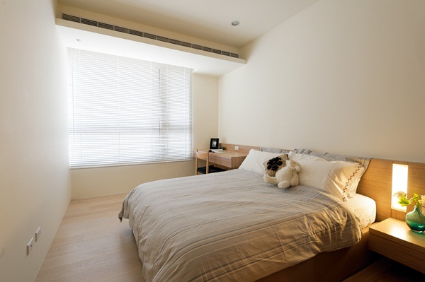 將鄰房牆面打開做主臥更衣間,讓床背板與樑間保留一米開口化解雙邊封閉感。