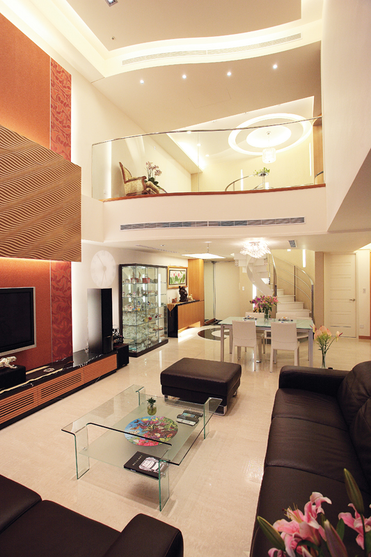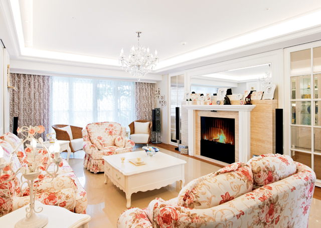 一對經常旅行世界各地的夫妻,一直希望有個鄉村風的家,在翻遍了國內外雜誌卻找不到自己心中的居家設計氛圍時,相當懊惱,經過幾次溝通後,江榮裕發現男主人追求的其實是休閒風、女主人則嚮往溫馨浪漫風格,在了解屋主對生活機能的需求後,他一方面利用典雅的線條設計呈現休閒鄉村風,二方面又利用高科技做出一個3D 電視壁爐
