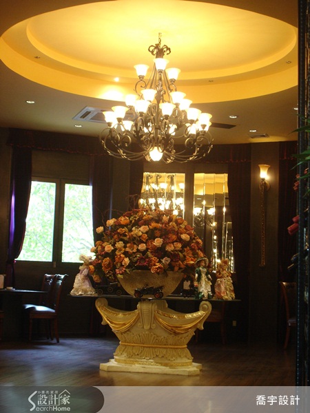 造型天花加上華麗吊燈,為空間呈現不凡氣勢。