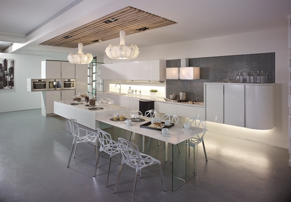 在緩緩升降、悄無聲息的廚具運用中,不僅讓人看到智慧型廚房巧妙的微動科技技術;驚鴻一瞥的客製化藝術門板,則落實工藝與藝術結合的概念;而其平面隱藏式設計,更成為廚具設計美學的新典範。