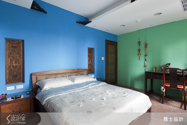 運用大膽鮮明的藍色和綠色為主色調的女孩房打造別具風格的東方風格。
