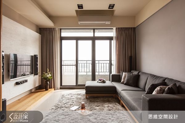 簡單舒適的客廳,利用地毯降低極簡風格過度冷調的感受。