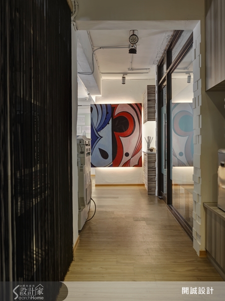 05 廊道牆面上掛上一幅抽象藝術畫作,散發濃厚藝文氣息。
