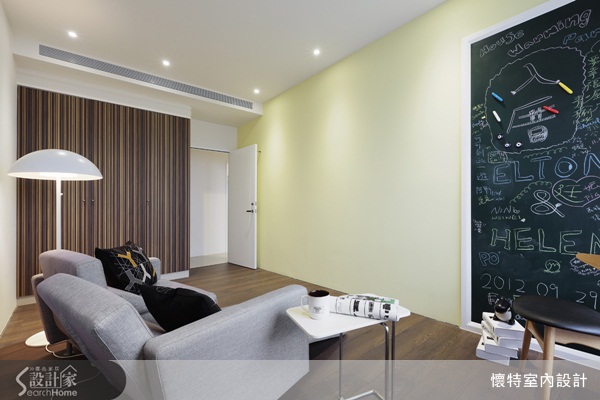 喜歡隨手塗鴉,或者煩惱未來該給孩子怎樣一個可任意揮灑的空間嗎?在這裡,設計師利用黑板漆塗滿牆面的一個區塊,讓屋主可以隨意塗鴉寫字。除了可以當作臨時的留言板,未來做為小孩房使用時,也能成為孩子可發揮創意的好地方!
