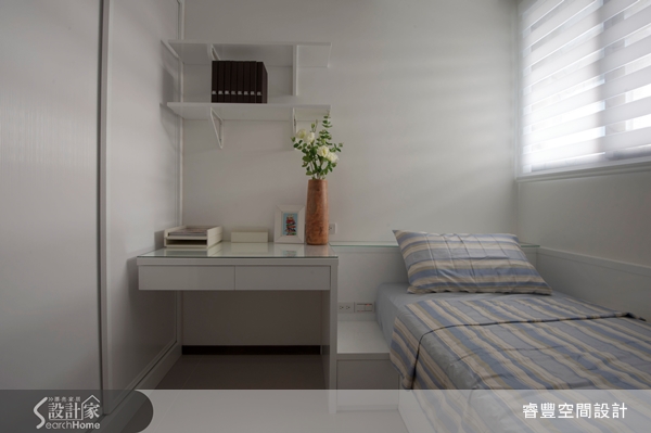 主臥將收納櫃與床頭結合,全室空間以優雅及柔白的風格作為起居特色,營造一個舒適舒眠的休憩空間。