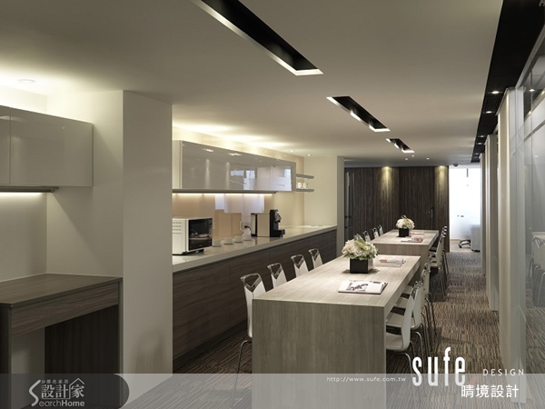 特別設置的中島吧檯區域與長桌,提供了員工休憩的場所,讓工作效率更加提升。