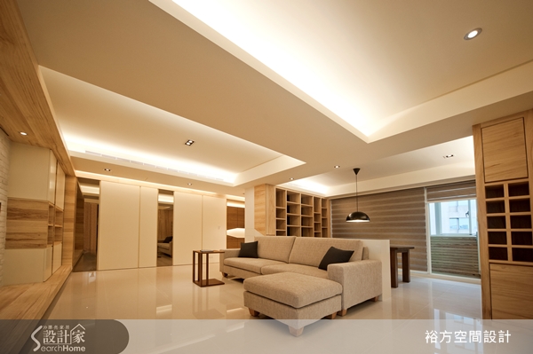 利用間接燈盒的設計,消弭建築橫樑所產生的壓迫感,讓空間顯得摩登時尚。