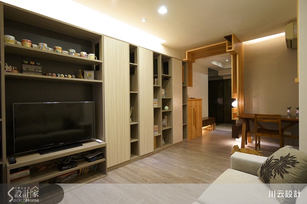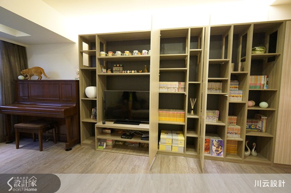 落坐於台北市的二房二廳25坪中古屋,由於屋主有心愛的貓咪陪伴,為了能夠讓毛小孩有一個舒適快樂的天地,在空間規畫時也考量了貓咪的習性,整體風格以溫馨舒適的北歐風木作為主體,打造出生活感強烈的居家空間。簡單的木作裝飾,加上機能收納櫃,搭配間接照明與木質地板,讓客廳呈現溫暖的氛圍,收納櫃除了發揮強大功能外,隔板也做了中心挖空的特殊處裡,形成特有的”貓道”,讓心愛的貓咪可以自由穿梭其中。極簡的設計,沒有一絲多餘的裝飾,運用造型燈具與光影變幻,讓室內增添了不同的表情,呈現出少即是美的樸質美學。收納櫃旁的鋼琴透露了主人的音樂才華,在這樣舒適的空間裡,有動人琴聲與貓咪陪伴,是多麼幸福的生活。
