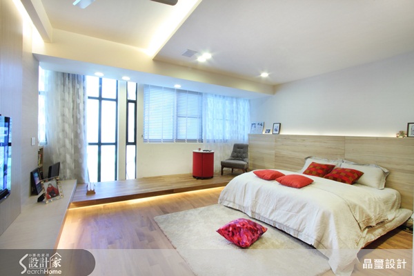 02 寬敞通透的臥房設計,利用地坪高低為屋主規畫出舒適閱讀空間。