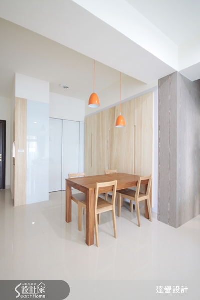 03 素淨淡雅的空間,以設計感的橘色燈飾來妝點,讓空間展現出活力感