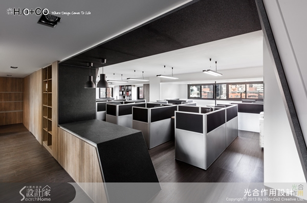 辦公室需要很大的收納空間,所以設計師運用巧思,將原本的隔間打除並改為收納牆面,一則加大室內空間感,二則提昇室內採光,同時還解決了收納空間不足的機能問題。