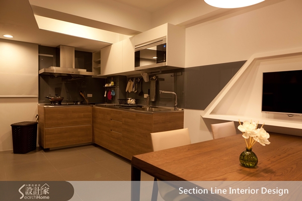 廚房的木製櫃體除了可滿足收納的需求外,溫暖的木色調也成為空間的另一個亮點。