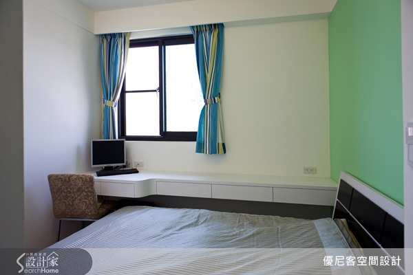 以色塊作為房間的主題,不僅可讓原先的單色房顯得活潑有趣,也能感受到居住者獨特的品味,打造出空間的領域感。
