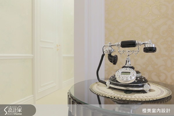 壁紙紋樣,牆面邊框的裝飾,加上復古造型電話,彷彿上海灘場景中的歐風豪宅。