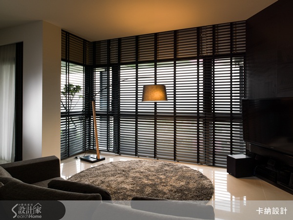 黑色百葉窗使用讓光影千變萬化,地毯與燈具營造出簡約時尚、風雅的氣息。