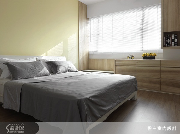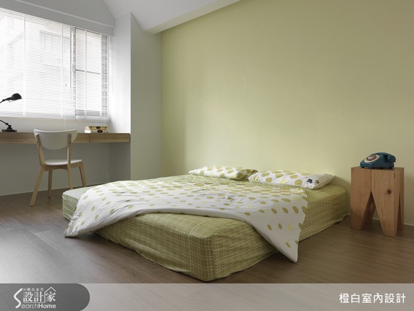在臥房空間設計師以粉嫩的黃色、綠色作為牆面的色彩,讓休息的同時也能感受到色彩為心情帶來的繽紛意象。