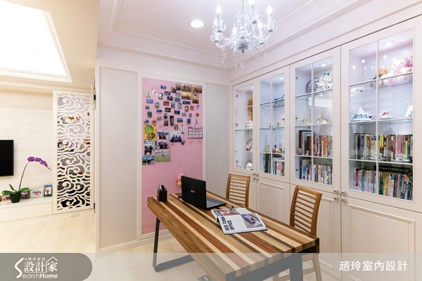 在風格呈現部分,屋主除了希望舒適之外,也希望充滿溫馨感,於是對於古典風格相當熟稔的趙玲設計師,便讓空間以古典風格為主,同時還加入一點點的微鄉村,彼此調合後,不但完成屋主對於家的夢想與期待,同時也能將女性柔情特質也注入到其中。
