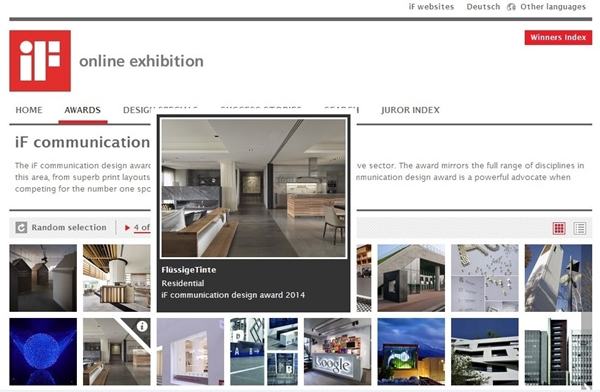 自 1954 年開辦的 iF 設計大獎享有高度國際知名度,該獎項已被公認為全世界最重要的設計競賽之一。 2014 年,尚藝室內設計與來自世界各地的設計者共同角逐,以「松仁國美」住宅案獲得德國iF設計-設計傳達獎肯定。