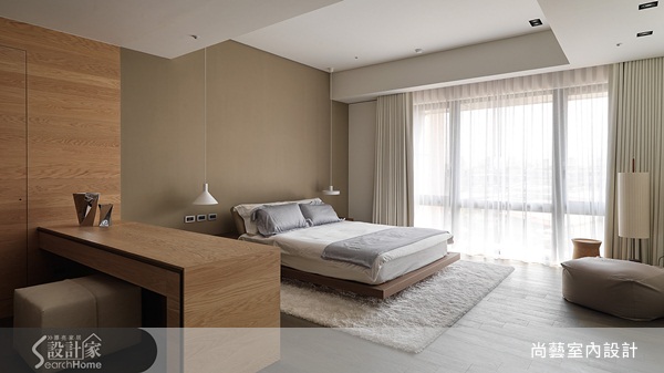 臥房盡量回歸單純,於是設計師運用色系來做鋪排,草綠色系搭配木作,營造出不造作且舒適的睡眠空間。