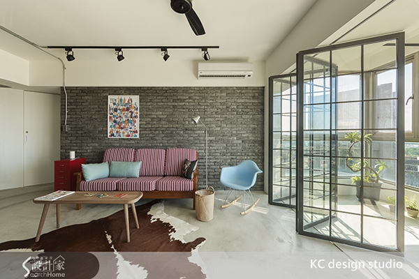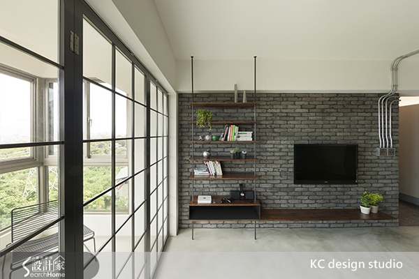 以鐵件與玻璃區隔客廳與陽台的空間,玻璃的澄靜感,是引入自然光的重要關鍵。