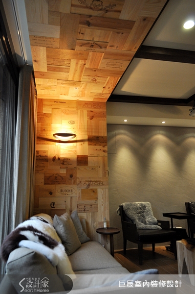 一片片印有世界各地知名酒莊的木片,為空間帶入了溫潤的氛圍,拼接的質感,讓空間顯得悠閒自在,更與紅酒收藏的主題息息相關,展現出畫龍點睛的精妙。