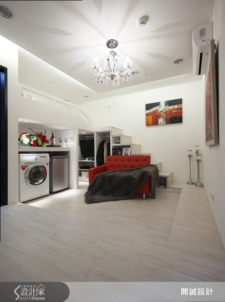 屋主非常嚮往溫馨舒適的居家空間,設計師便以淺色系為主色調,搭配溫潤木素材,除了具有放大空間的效果之外,溫暖的木建材也讓空間顯得溫暖不單調,減少白色空間的冰冷感。因為坪數不大,為了減少隔間設計,設計師運用家具作為空間界定的工具,不靠牆的兩張長沙發,巧妙的畫分出自在順暢的動線。在樓梯的下方處,規畫收納櫃和衣帽櫃,有效的利用每寸空間,滿足收納需求,讓生活機能更完善。在風格定調上,以屋主喜歡的美式風格為主軸,電視牆的下方擺放的燭台以及時尚奢華水晶燈,展現高貴大器的氛圍,臥房則是利用典雅的壁紙作為點綴,呼應公共空間的設計,打造放鬆舒適的休息空間。