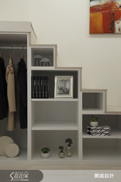 樓梯下方的收納櫃,可吊掛衣物和擺放裝飾品。