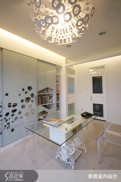 05 以不規則的透明幾何圖形,作為活動書櫃的門板,讓書房更顯得輕盈舒暢