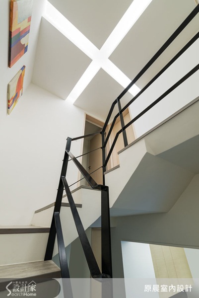 06 在十字型燈光的照耀下,凸顯出扶手處的線條感,與牆上的畫作相映成趣