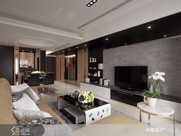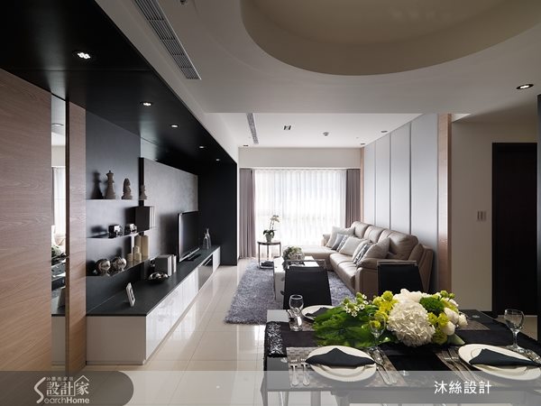 放眼望去,公共空間的客、餐廳採開放方式規劃,以白色為主色彩,黑色為樑體線條,在黑白對比之下,產生了延伸視覺、放大空間之感。