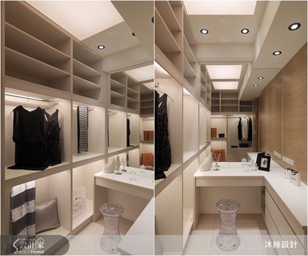 隱藏式更衣室中,能夠窺見女主人的小天地,看看這裡,有著專屬的梳妝區域、開放式的衣物櫃,妳可以在這盡情梳化換衣、外出參加一場又一場的老友聚會,誰說退休等同平淡無味,有時也能成為另一種時尚生活的開端。