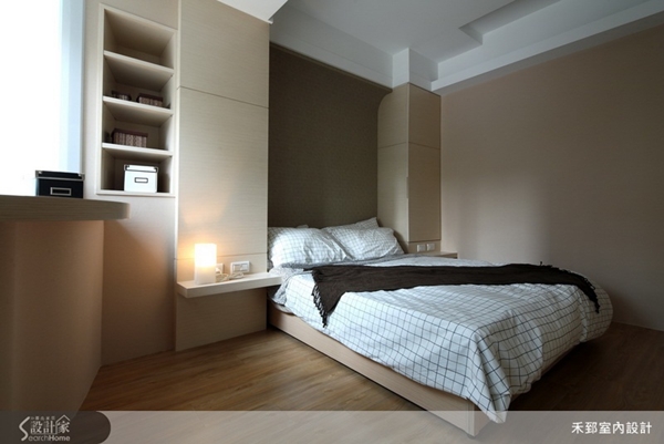 融合了木質地板與淺色櫃體的舒適色系,不但提供了良好的收納功能,也讓休憩的氛圍隨著光線的進入而倍感宜人