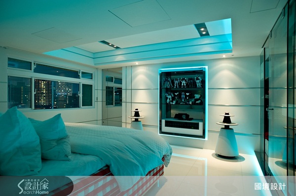 03 以箱型結構呈現出立體感,並採用透光玻璃造牆與客廳進行區隔,以最優雅的方式引入光源,而 LED 除了照明之外,也能營造氣氛感