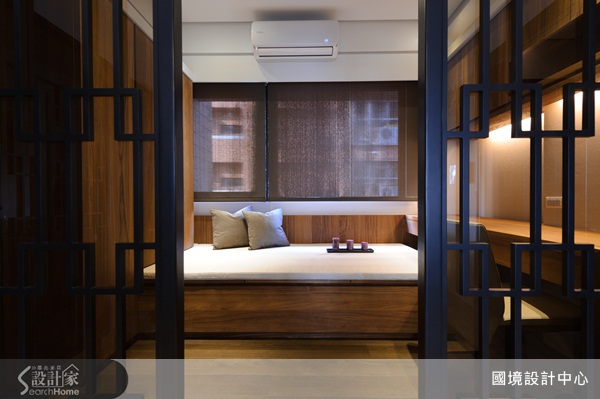 05 實木創造溫潤且具質感的人文空間,但小撇步是門上帶有中式風情的窗花,在現代中又帶有能讓人更為靜心沈澱的氛圍