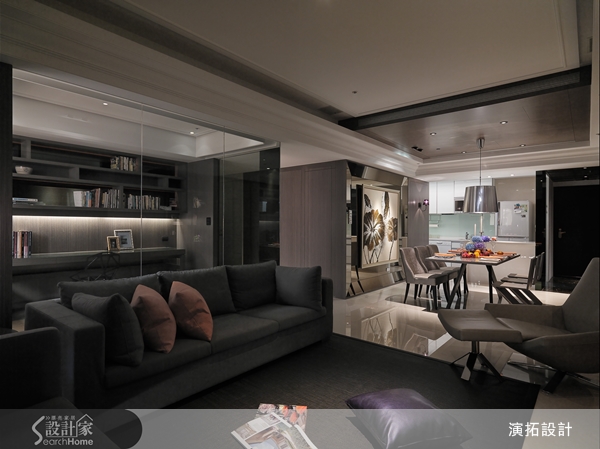沈穩內斂的現代風住家,書房就在客廳後方,運用灰玻能創造視覺上的空間感