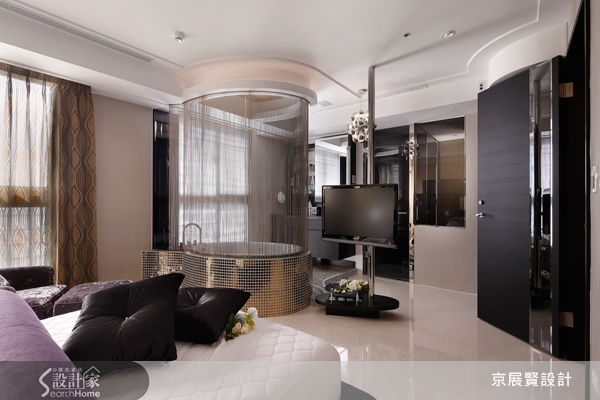 位於新北市新店區, 40 坪 4 房 2 廳的奢華風設計。身為單身都會女子的屋主,經常需要往返於國內外之間,設計團隊便將其設計核心放在「心靈的休憩空間」這個主軸上,並以精心營造的奢華風格加以形塑,建構出一座專屬於單身都會女子的 Villa 宅第。