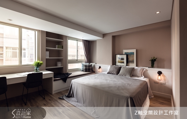 05 讓人放鬆心情的中性色調與窗外引入溫暖日光,打造紓壓的睡眠空間。