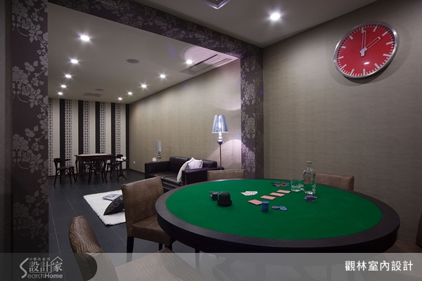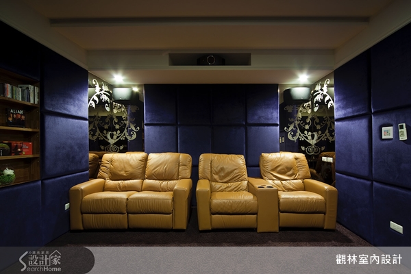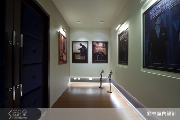 這是一間三代同堂的大家庭,屋主希望將15年以上的自宅別墅重新整頓,找來觀林設計操刀規劃。屋主一家人十分重視生活上的娛樂品質及影音視聽享受,黃傳林最後將地下室打造成時尚Lounge Bar,並加入娛樂間、健身房、視聽室等空間規劃充實家的休閒機能性。屋主熱愛觀賞電影,對此設計師幫屋主規劃專屬的影音視聽室,將地下室的走廊設計成具人文氣息的藝術廊道,在家就像是到電影院一樣,滿足一家人聽覺與視覺的雙重享受。