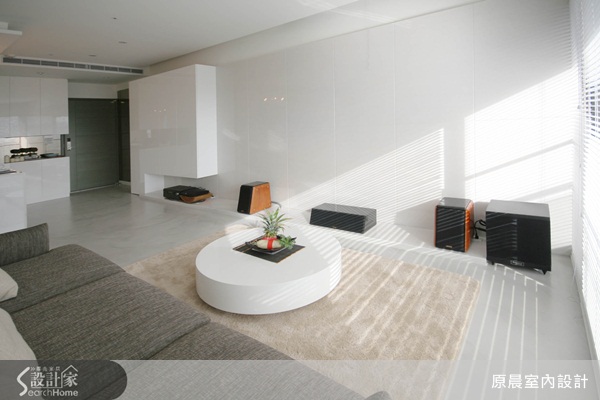 純淨的白色櫃牆與大面積落地窗,當陽光灑進後,整間屋子顯得和煦溫暖。