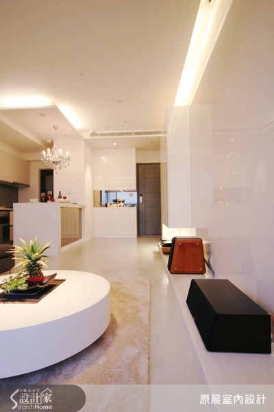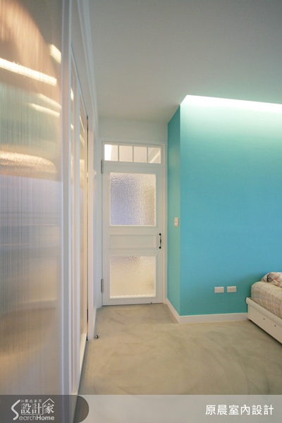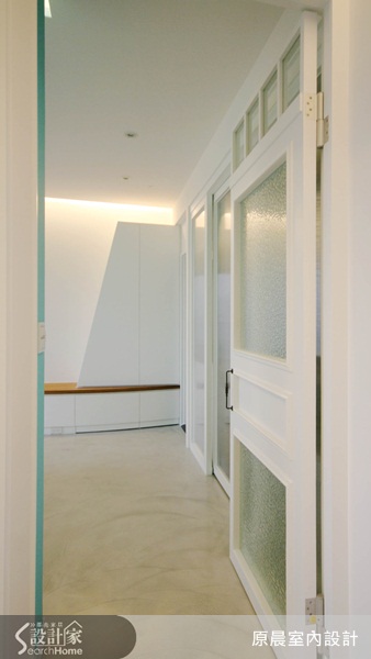 這次要帶你看的案例即是擁有良好的採光與通風性。本案是一間26坪簡約現代風的新成屋,2房2廳的格局設計。走進房映入眼簾的是純淨的白色櫃牆與大面積的落地窗,搭配大地色系的沙發與地毯,充分調和大量白色調所帶來的冷調感,當陽光灑進後,整間屋子顯得和煦溫暖。屋內的另一個特色設計則是以玻璃為主要建材的書房,牆上則是可書寫的玻璃書寫板,綴有透明幾何圖形的活動書櫃門板則增添書房的俏皮與個性,設計師表示這是看書得來的靈感,覺得適合作為書櫃門板上的圖騰;看到書房的書桌時,你可能會以為這是一張訂製的骨董桌,其實背後還有這麼一段故事──屋主有一張奶奶留下裁縫機,他希望可以保留住這份回憶,於是設計師將裁縫機以烤漆的方式處理,最後在白色的裁縫機上加上透明玻璃,就變成一張融入現代與復古意涵的書桌,十分別緻。主臥房的設計延續現代風的白色簡約設計,旁邊的大面窗戶則能可欣賞到屋外的綠意景色;更衣間的設計則以半透明材質作為隔版,穿透性的推拉門能引入光線,整體空間變得更加寬敞。