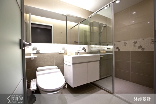 客用衛浴採乾濕分離設計,利用垂直性的光源設計,建立空間豐富的層次感受。